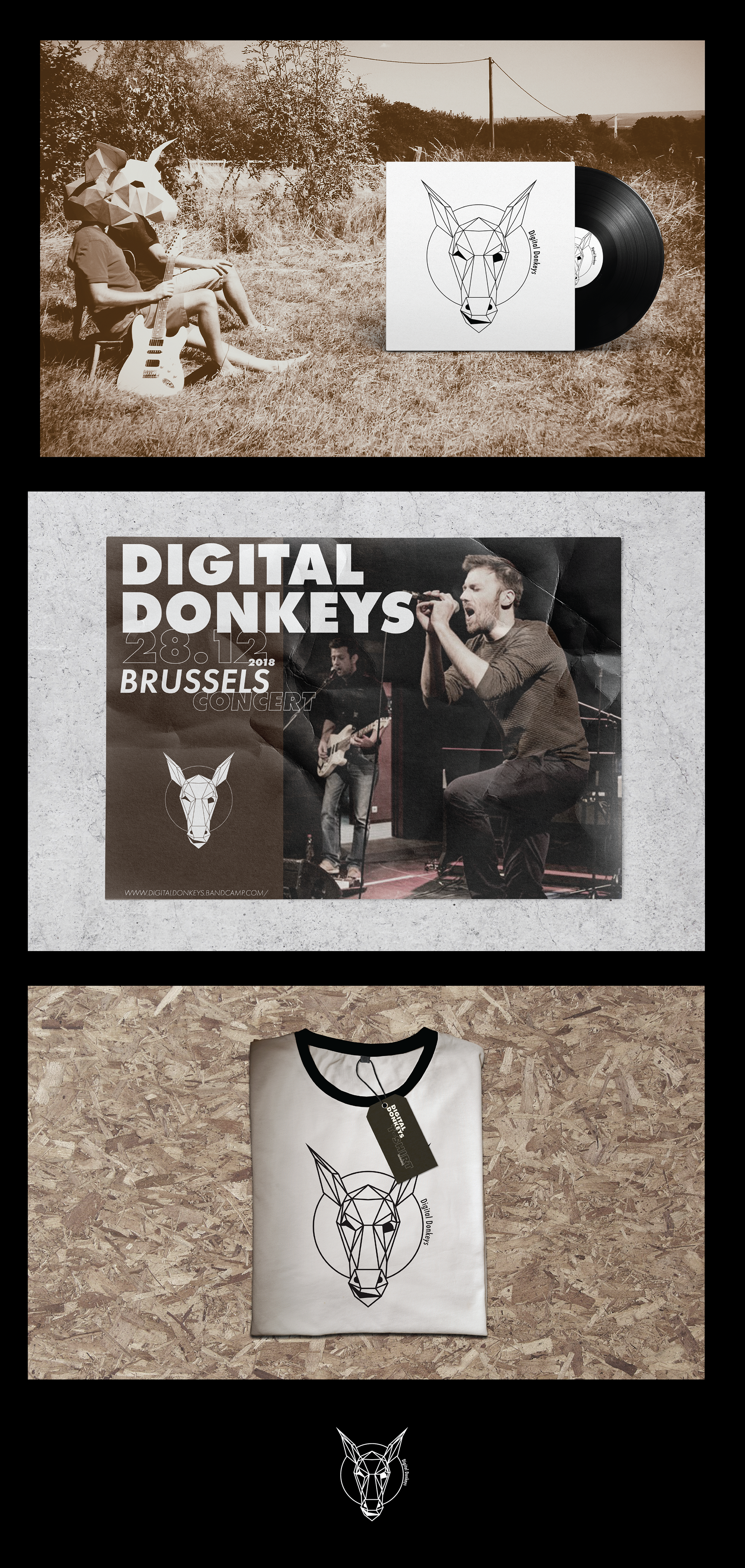 Réalisation d'un logo pour un groupe de musique belge, décliné sur plusieurs supports